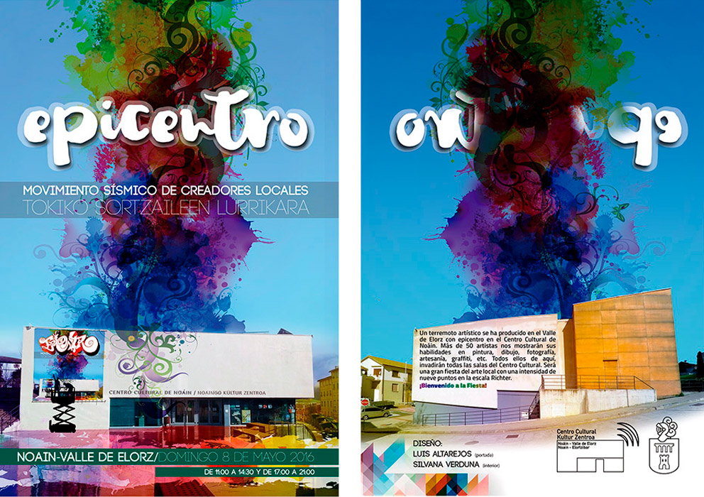 Hice este trabajo para un evento organizado por la casa de cultura de Noain. Consistía en una muestra de artistas y creativos de diferentes ramas y estilos. Como decía el briefing, un terremoto artístico con epicentro en la casa de cultura de Noain.